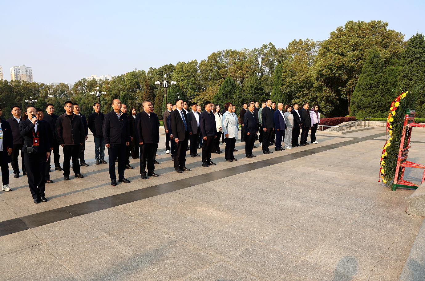 在黄麻纪念园纪念碑广场,胡广缓步上前,向革命烈士纪念碑敬献花篮,面向党旗重温入党誓词。在英烈墙前,大家依次敬献鲜花,驻足瞻仰,深切缅怀革命先烈的丰功伟绩,汲取奋进力量。